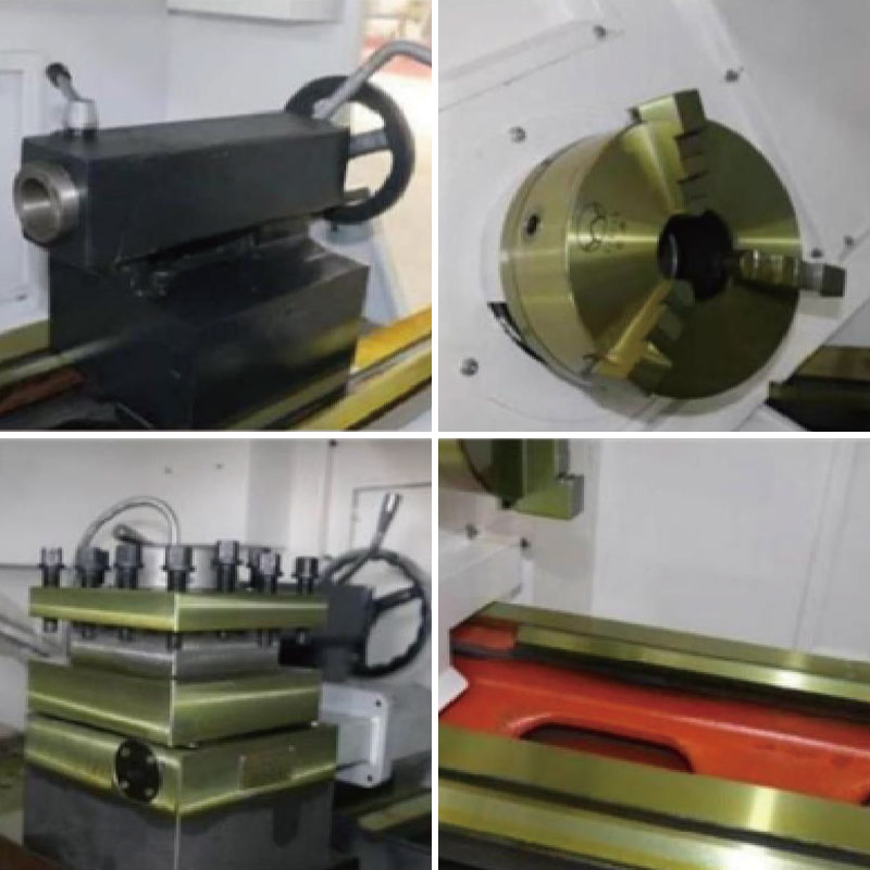 I dtéarmaí an chórais tarchuir, úsáideann an deil CK6150 an scriú liathróid bheachtais den bhranda Hanjiang. Tá struchtúr teanntachta ag scriúnna liathróid an z-ais agus an x-ais. Ina theannta sin, tá comhpháirteanna leictreacha branda Delixi agus sealbhóir uirlisí leictreacha ceithre stáisiún gan ardú uirlisí ag an uirlis meaisín. Is é 25x25mm an méid láimhseála uirlisí, rud a fheabhsaíonn an t -athrú uirlisí agus an solúbthacht próiseála. Is é sealbhóir uirlis CNC ceithre stáisiún an rogha is fearr le go leor úsáideoirí dá shuíomh ardchruinnithe, dá chobhsaíocht mhaith agus dá infheidhmeacht leathan, chomh maith lena struchtúr simplí agus a chothabháil éasca.