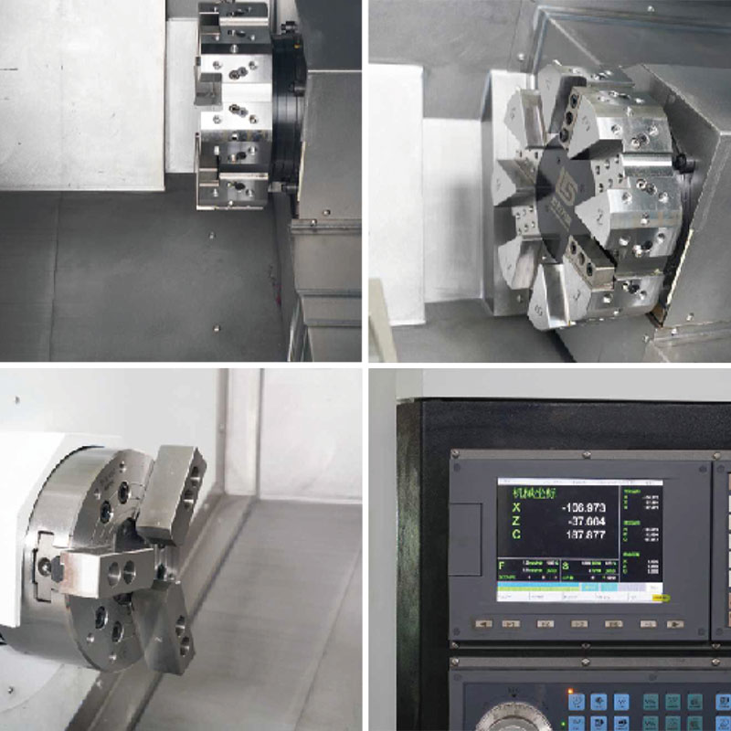 Tá an trealamh feistithe le Chuck Trí-Jaw hiodrálach mar chaighdeán chun a chinntiú go bhfuil clampáil chobhsaí ar an bpíosa oibre agus go bhfeabhsófaí sábháilteacht agus cruinneas na próiseála. Ag an am céanna, tá iompróir sliseanna uathoibríoch ann chun an t -am le haghaidh glantacháin láimhe a laghdú go mór agus chun éifeachtúlacht táirgthe a fheabhsú. Mar gheall ar an gcóras rialaithe cliste, tá sé níos éasca an oibríocht a dhéanamh, agus is féidir tascanna próiseála casta fiú a láimhseáil go héasca.